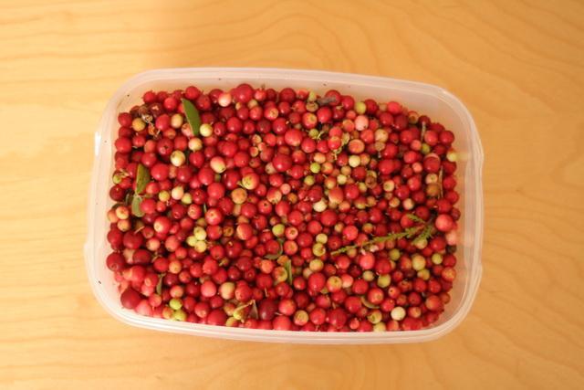 A vörös áfonya(finnül: puolukka, latinul: vaccinium vitis-idaea) vitaminokban gazdag, kissé fanyar ízű. Szinte minden ételhez eszik, ha van rá módjuk: húshoz, sült sajthoz (leipäjuusto), a sütőben sült egytálételekhez (laatikko),amelyeknek számos változata ismert. Vörös áfonyát a Nastola melletti erdőbe mentünk szedni, ahol egy kis mocsár is fekszik. (Cikk: Áfonyát szedtünk)